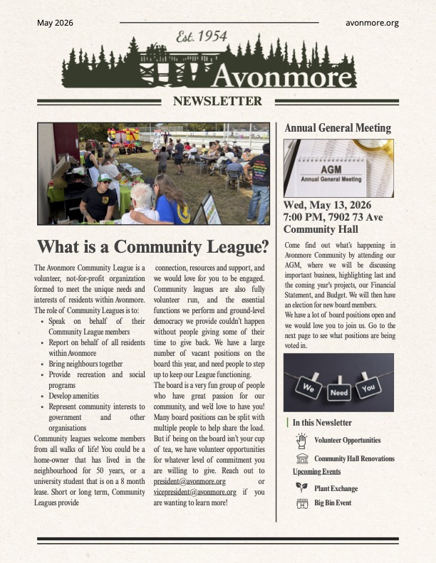 Avonmore strives to provide a variety of programming for our community league members. We’re always open to new ideas and volunteers.